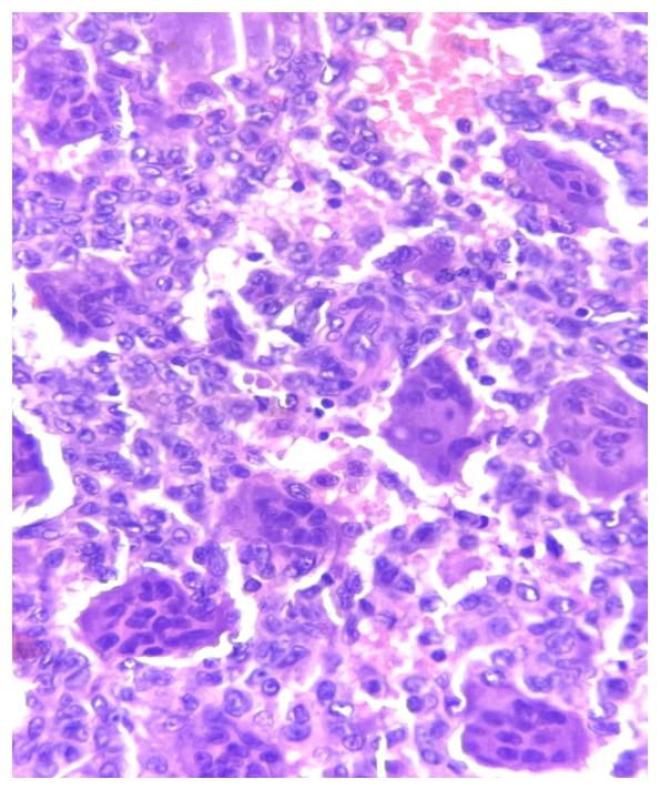 d) Muestra una matriz tumoral mineralizada.