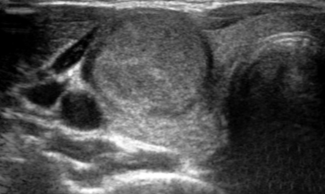 Se encontró nódulo intratiroideo de 4 cm de diámetro, TIRADS 3.