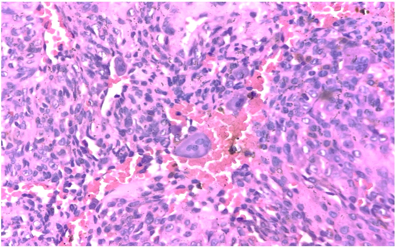 b) Tumor de células gigantes maligno.
