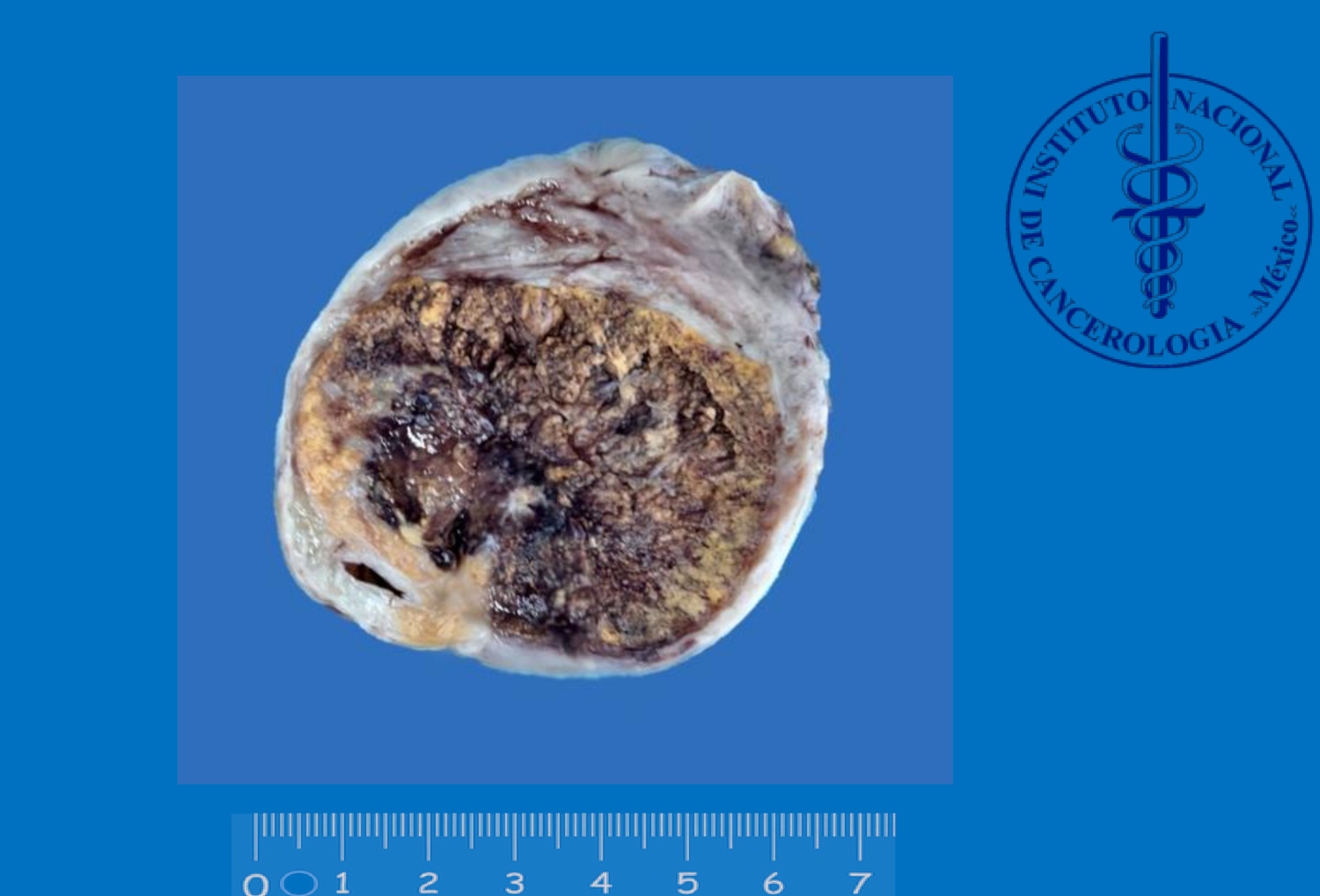 • USG: tumor ovárico derecho, componente sólido-quístico ORADS4, tamaño: 7.6 x 6.6 x 6.3cm.