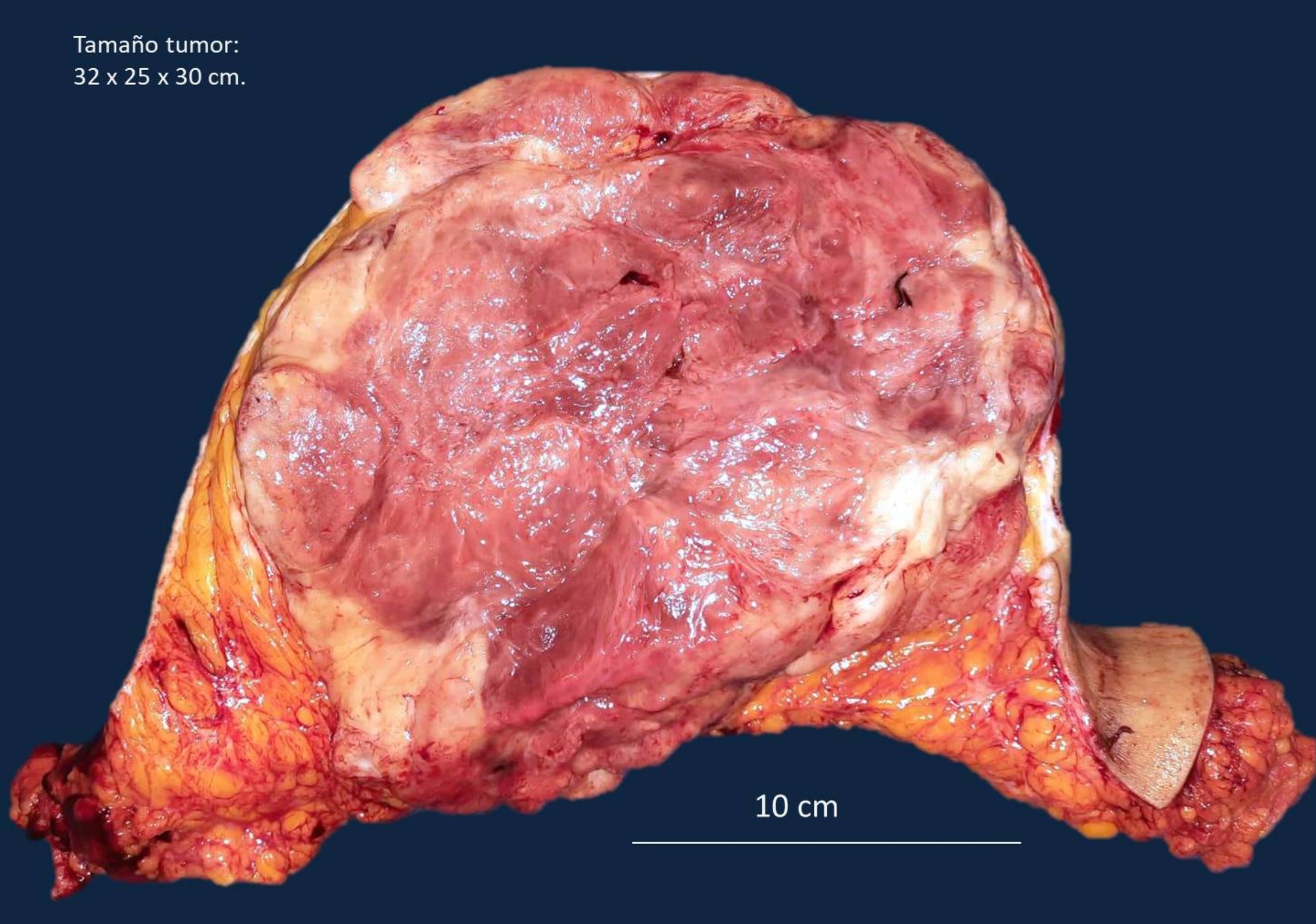 Mujer de 46 años de edad, que inició padecimiento actual hace 6 años con lesión palpable en mama izquierda, posteriormente continuó con nuevas lesiones, acudió con facultativo, quien refería como “normales”, hace un año comenzó a crecer, por lo que deciden realizar tumorectomía sin tratamiento adyuvante, posterior a esto, la neoplasia presenta nuevamente crecimiento, en esta ocasión de manera acelerada y se decide realizar mastectomía simple izquierda.